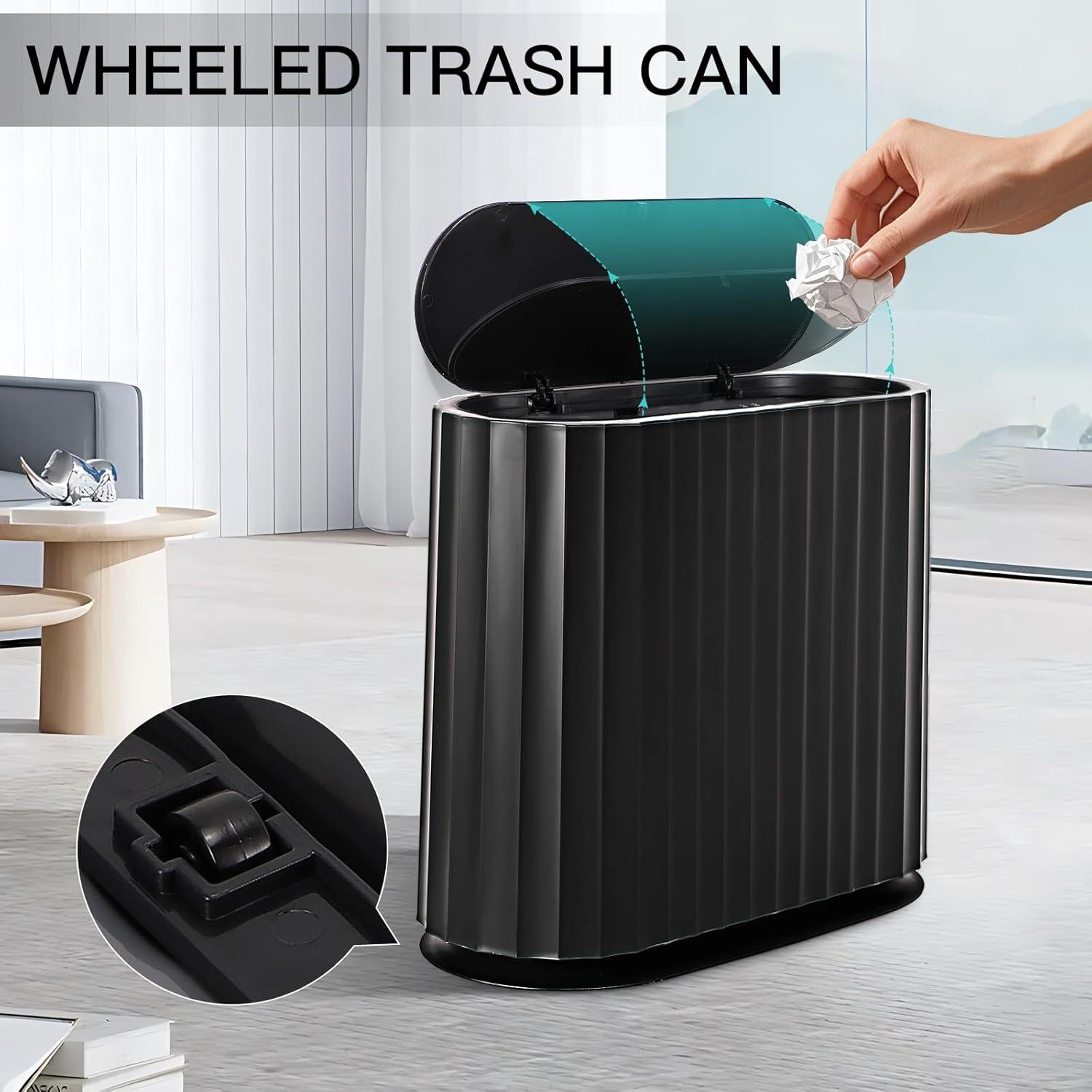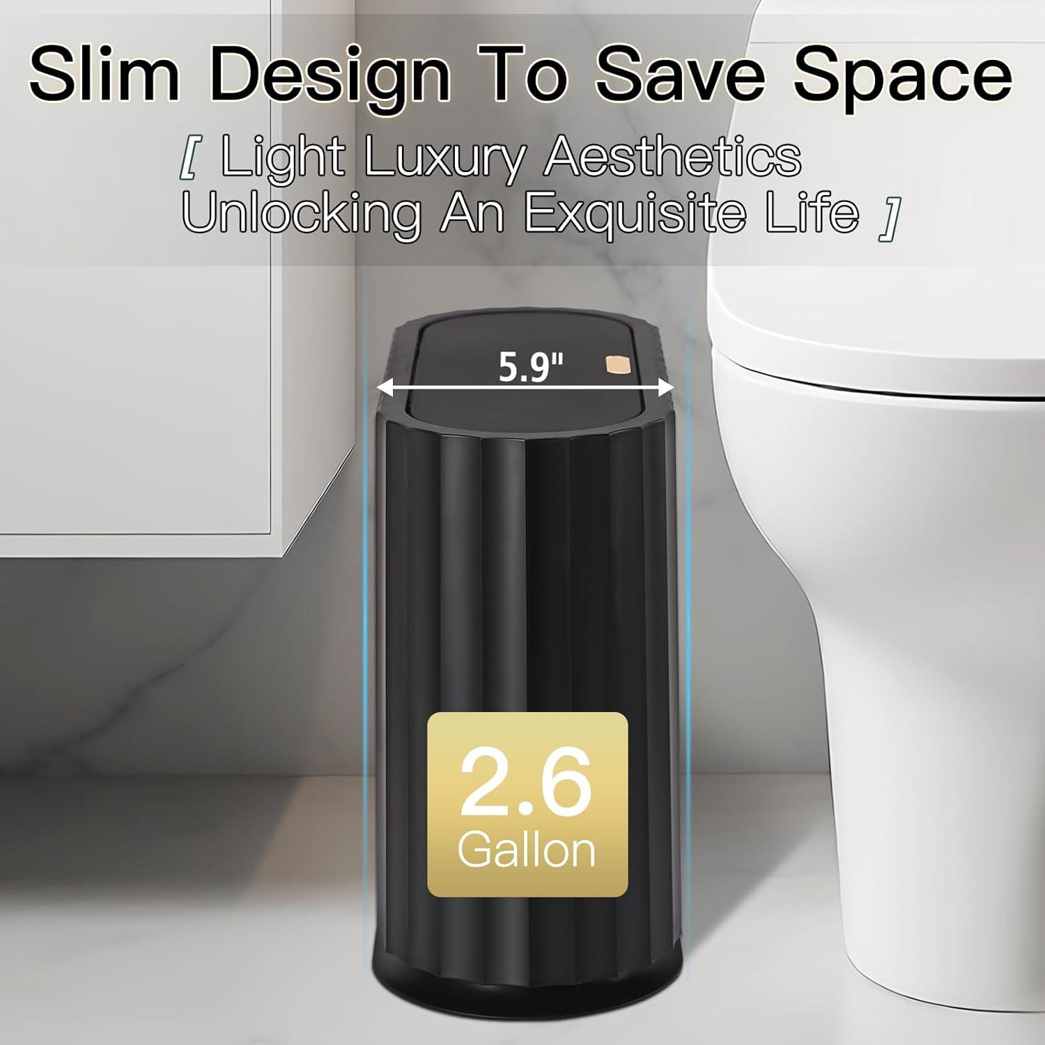 [Save-Space Small Trash Can]: XLHOMO slim bathroom trash can making it a fit for the bathroom, bedroom, office, or any narrow space.Are you still annoyed by the narrow space in the room being wasted?Use it to improve your space utilization.